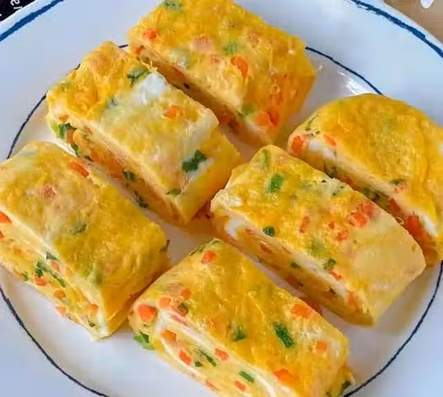 1.四個雞蛋打散,加入食鹽攪散,放入蔥花、胡蘿蔔碎攪勻。