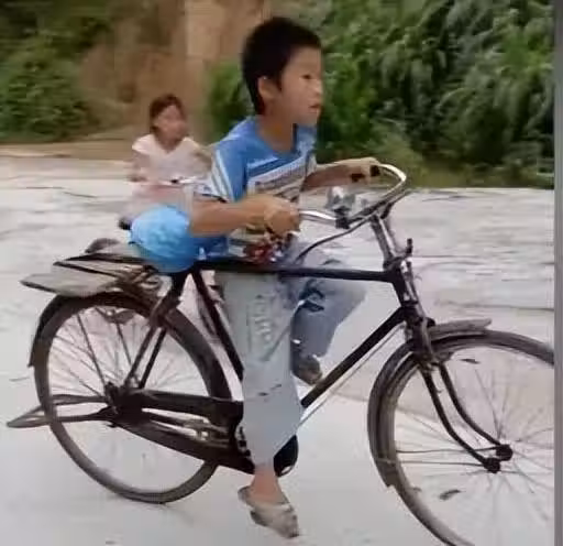 稍微長大一點,腳踏車就比較流行了。一般的家庭多多少少都會有一輛。可是當時的腳踏車前邊都有一個橫槓,這讓很多想騎車身高卻不夠的孩子們可是急壞了,騎上去肯定會卡襠。