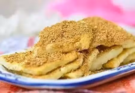 6.出鍋裝盤,撒上芝麻孜然粉即可。