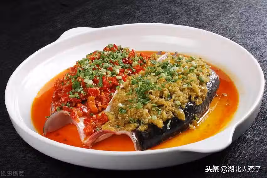 食材:花鰱魚魚頭一個,雙色剁椒適量,小蔥適量。