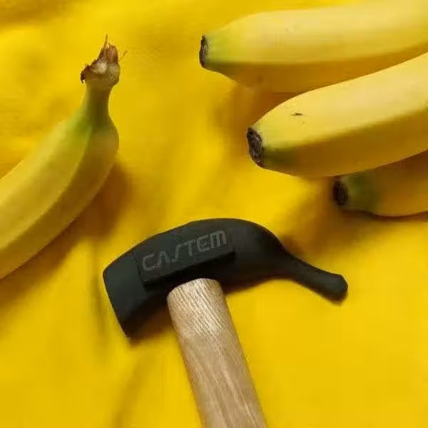 全長約20公分,重量約1.5公斤的「香蕉鐵鎚DX」是真的可以拿來當鐵鎚敲釘子,而且因為是鋼鐵製作的,所以可以在攝氏1千度的環境使用哦!