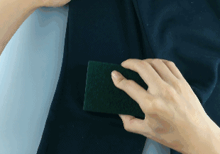 如果有特別頑固的紙屑,就用百潔布粗糙的一面擦拭衣物。