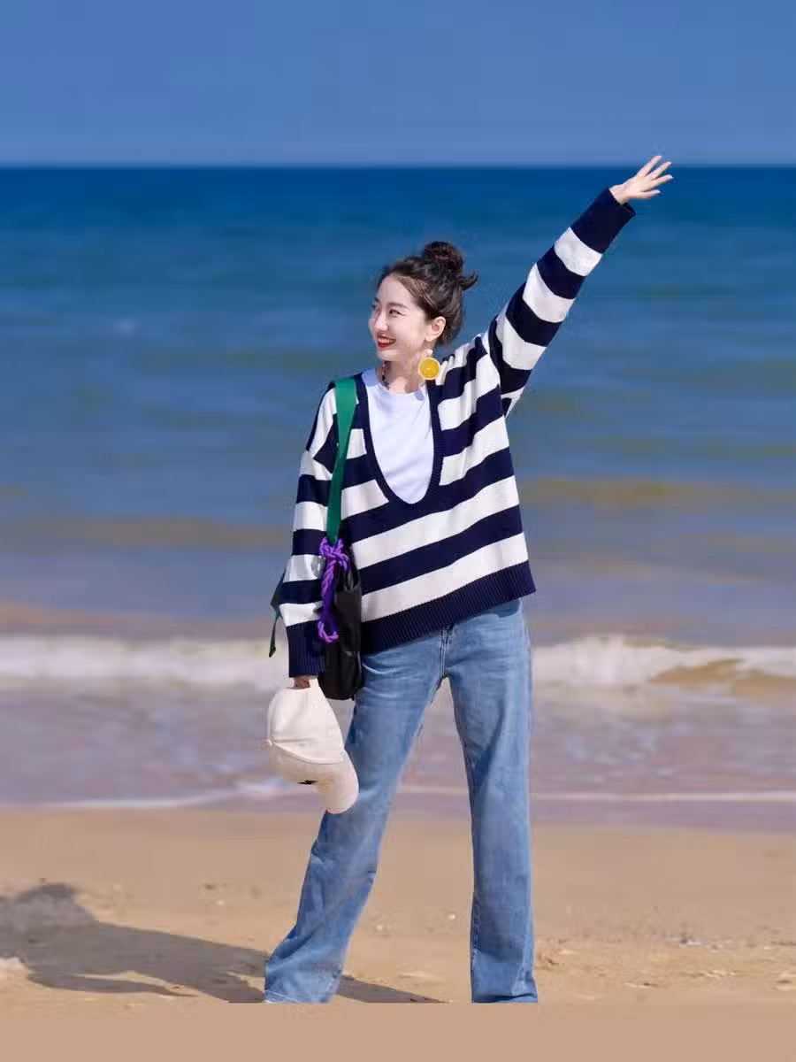 拍全身照,想要照片漂亮出片率又高,除了表情外,顯高顯瘦也是關鍵,不要拘謹這自己,將手抬起,藉助抬手的動作,讓舉起的手作為視覺身高的一部分,拍照自然會更顯高顯瘦。