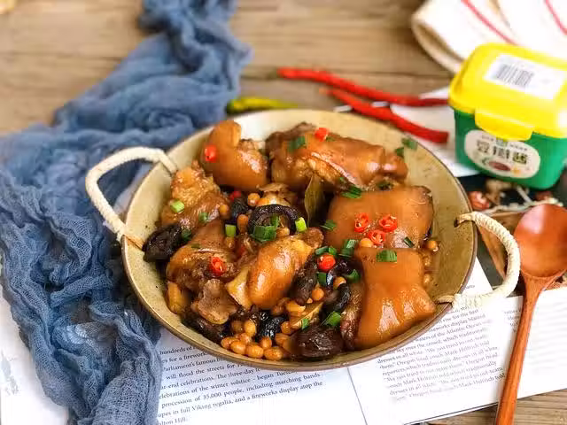 4、紅燒豬蹄可以根據自己喜歡的食材搭配,可以加點雞蛋、土豆、黃豆等等,使整道菜看起來更加豐富又美味。