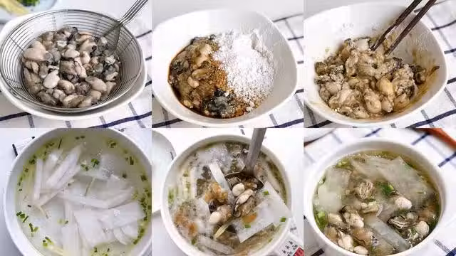 食材準備:白蘿蔔200g、豬肉250g、地瓜粉5g、生抽5g、蚝油5g、香蔥2根、生薑2片。