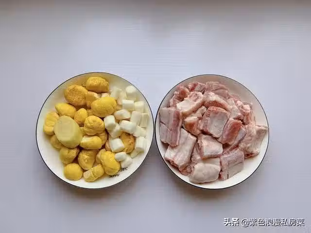 1.準備好食材,排骨提前用清水浸泡,泡出血水,板栗我也提前去殼,山藥去皮切小段。