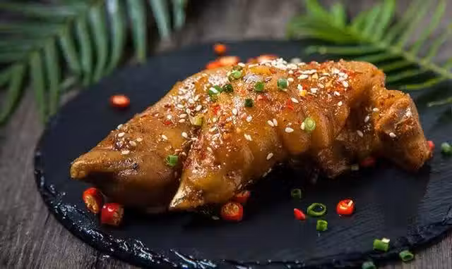 【材料】豬蹄4隻、姜6片、蔥4根、大棗4個、八角2個、草果1個、丁香5粒、干辣椒5個、花椒10粒、高度白酒30ml、老抽30ml、生抽30ml、紅糖10克、鹽5克,芝麻少許,辣椒粉少許