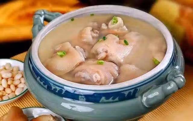 【材料】豬蹄500克,海帶200克,姜1塊、乾花椒10顆、蔥1根、料酒1勺
