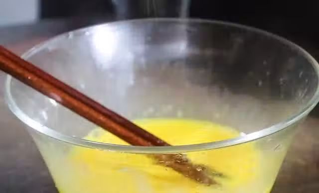 第二步,拿三個雞蛋打散,依照寶寶們的口味在蛋花裡面放入少許鹽,加入一小勺的豬油,不用太多以免寶寶吃起來太油膩,反而反感了。之後按照1:1.5的比例放入溫開水,將其攪拌均勻。