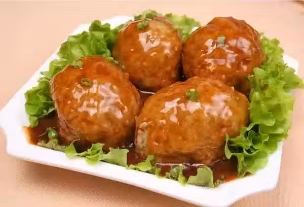 3.鍋里放入燒至8-9成熱,把做好的肉丸子入鍋炸至表面金黃即可撈出。