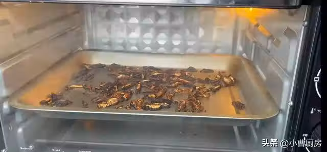 烤成這個樣子就可以了,下手一折能輕鬆的折斷,香菇炒好後先倒入盆中放置一旁備用。