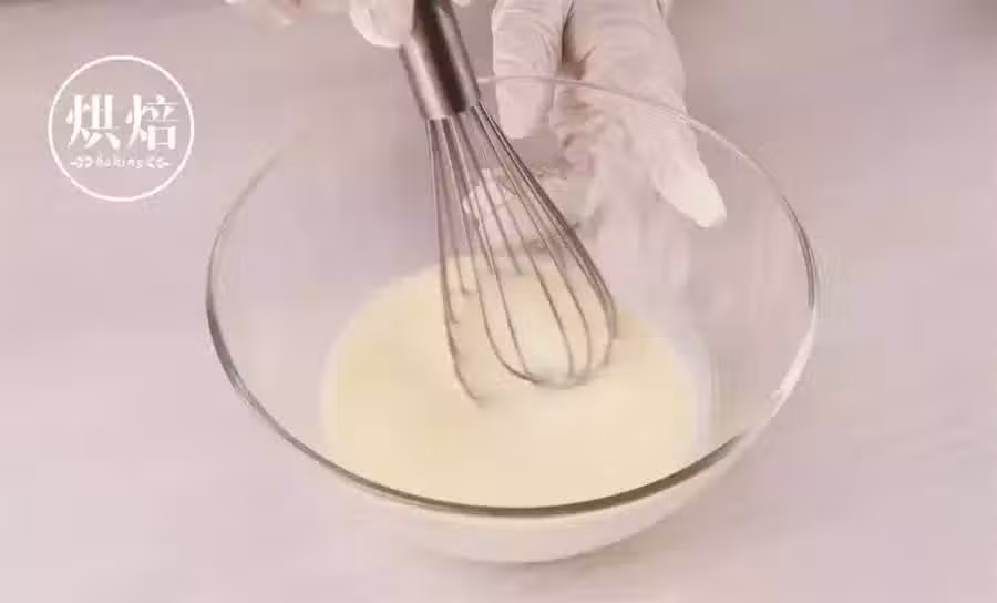 過篩加入低筋麵粉,攪拌至沒有顆粒感即可。
