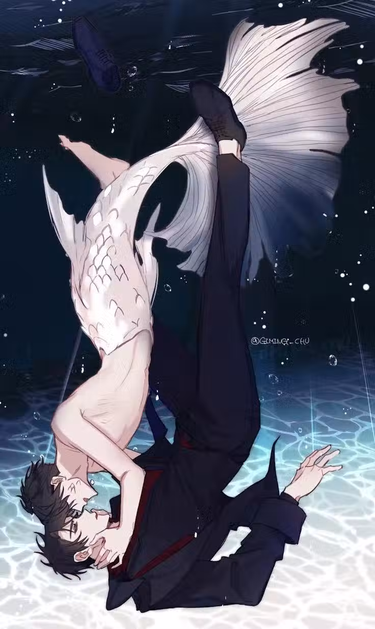 他的皮膚和從前一樣涼,白楚年混亂地想,他是深海魚,嬌氣怕熱,和人類體溫相差太多,從前隻要親一下就會被燙得尖叫,多親幾下就會哭起來,第二天早上能從他睫毛上取下一顆形狀不大規則的珍珠。