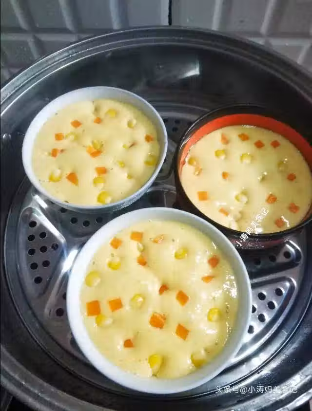 蒸好的玉米雞蛋糕又比蒸前大很多,還拱起了!