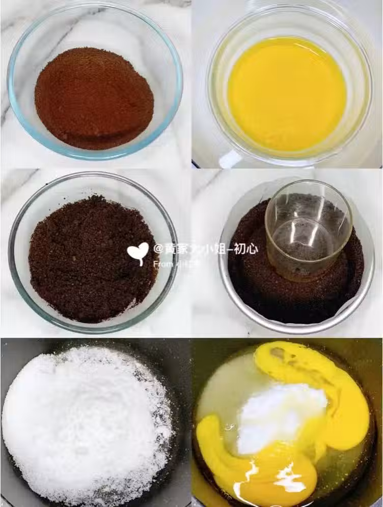 【2】將80g的黃油隔著熱水融化並和奧利奧餅乾碎一起混合均勻。