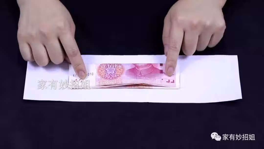 接著,再用衛生紙將錢完全包裹起來,再準備一長段的膠布,把膠布粘在衛生紙上。粘好後,我們再將床頭櫃的抽屜拉出來,把它粘在抽屜反面的板上。