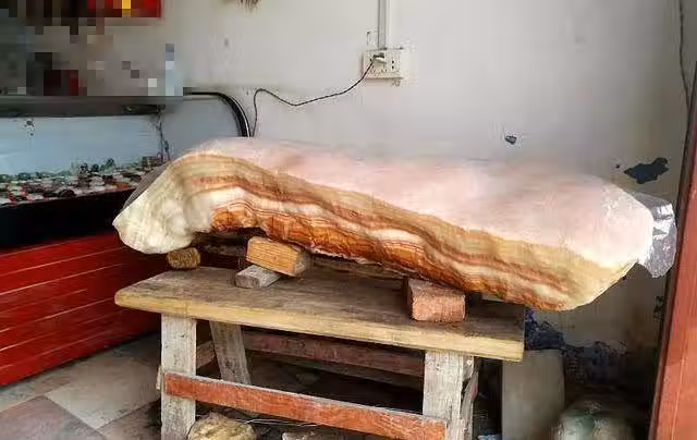 其實這種石頭也叫「豬肉石」,非常罕見。老人在山上撿到這塊豬肉石,一眼就看出了它的特別之處,於是拿回來放在家裡保存。很快豬肉石的消息就傳出去了,很多人聽說老人撿到一塊像豬肉的石頭,趕緊來看一看市面,都紛紛驚嘆它的外表,簡直就是一塊豬肉,是千年難得一遇的瑰寶。