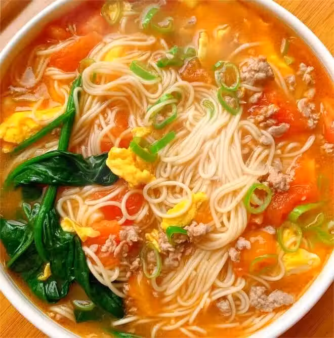 食材準備:肉末,雞蛋,番茄,青菜,麵條,生抽,蚝油等。