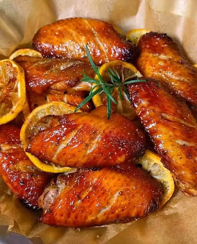 烤盤上鋪一層檸檬,擺上雞翅。