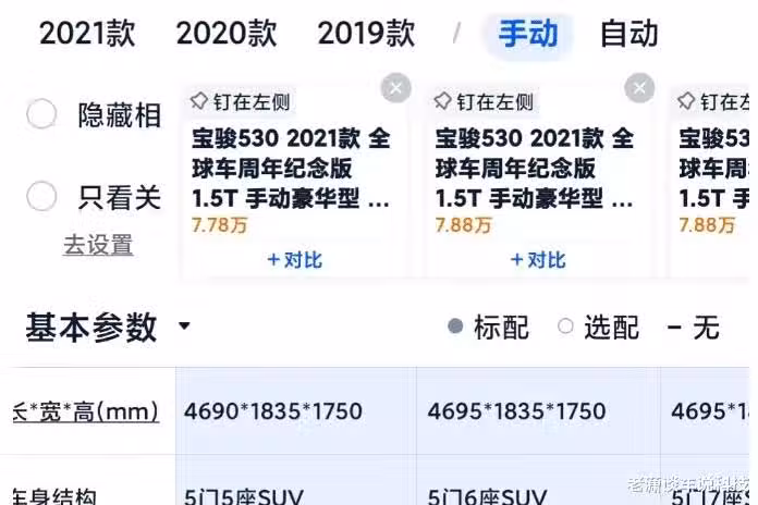 寶駿530手動豪華型6座跟7座車型,報價7.88萬。