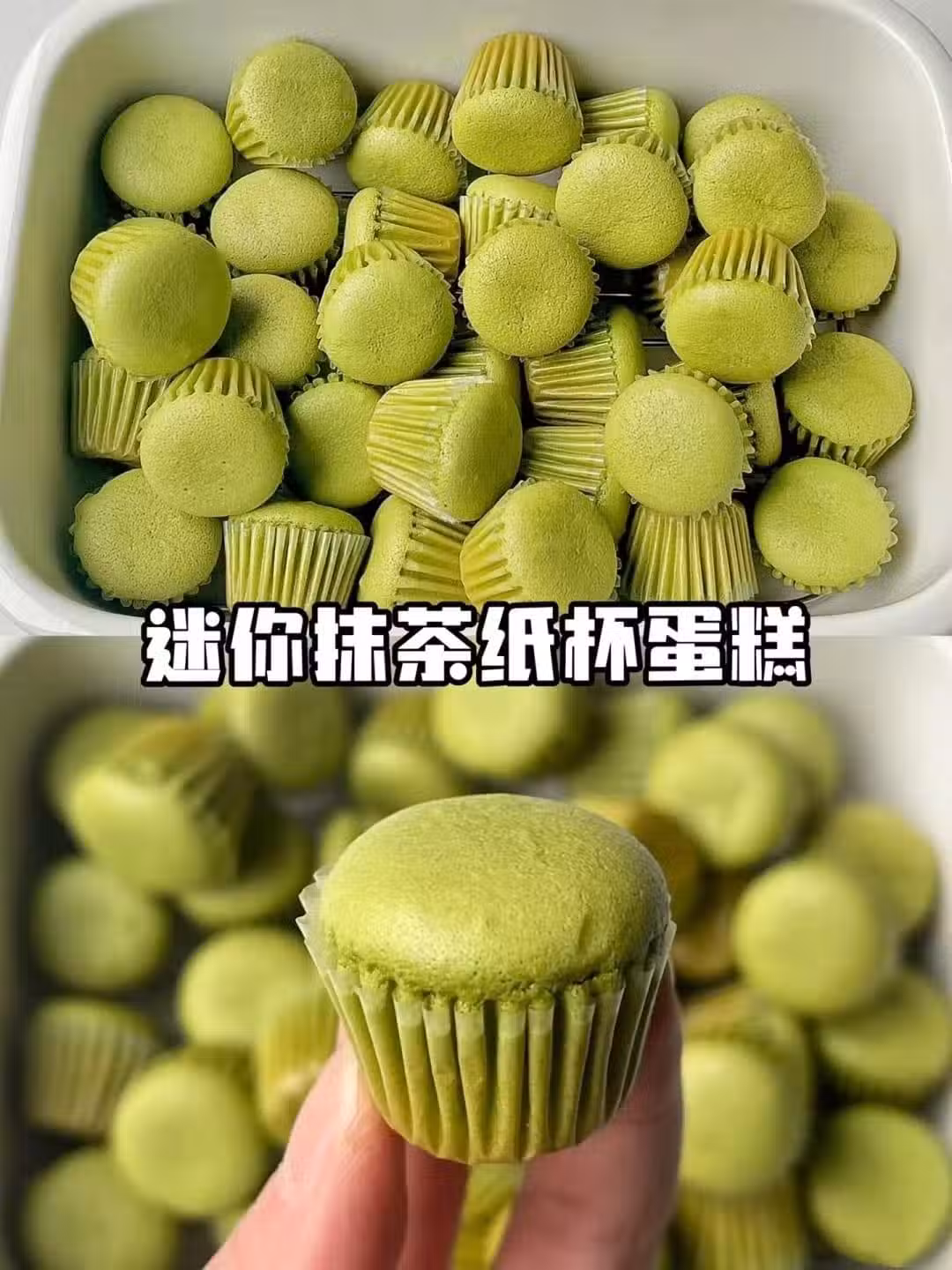 一口一個的迷你抹茶紙杯小蛋糕