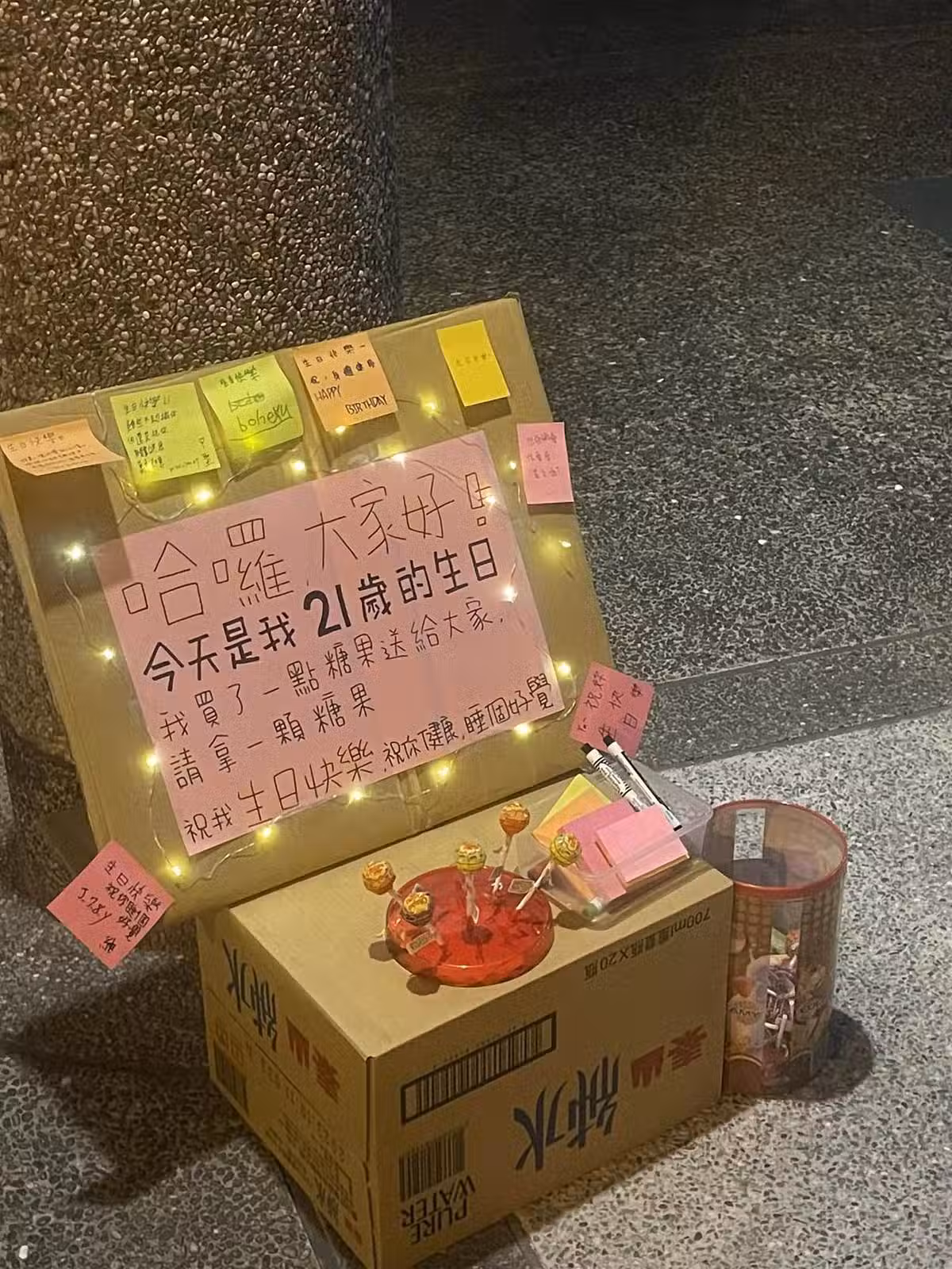 今天我生日!他在路邊紙箱「大方放滿棒棒糖」分送給路人💗細看便利貼讓人一秒爆淚... 最溫暖的是人心❣️