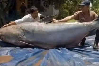 其實這條魚能長這麼大的原因,就是他生活的地理環境,因為它處在一個湖泊當中,身在湖裡面基本上是沒有什麼魚能夠打得過它,而且因為長期吃了很多牛羊,所以長大了體積也是非常大的,而且湖泊因為發生這種事情,很多村民都非常害怕,也不敢來這兒釣魚什麼的,所以就導致這條魚生活在深水處,在水中它的食物非常多,所以自然而然會長這麼大了。