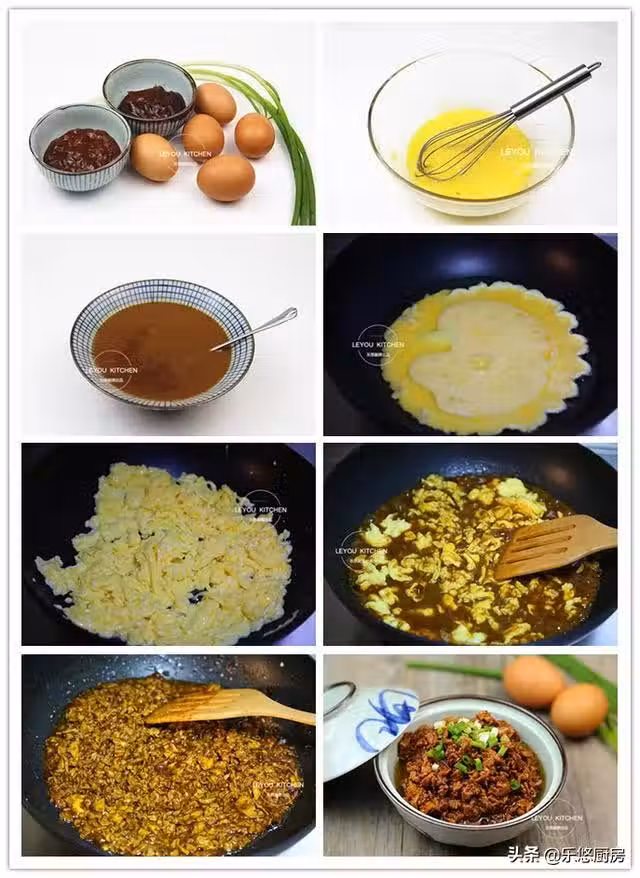 第七步:待湯汁收得越來越濃稠時,放半勺糖調味,然後即可盛出。吃的時候,撒一點香蔥末點綴。(因為醬很咸,所以不用再加鹽。)