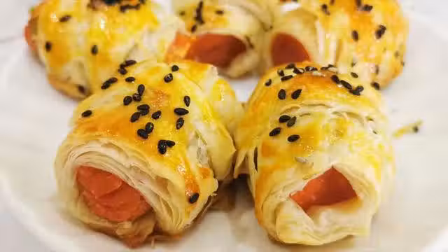 做法:將香腸切成薄片,雞蛋打入碗中,加入適量鹽攪拌均勻。在手抓餅上塗上番茄醬,並放上香腸片,然後將手抓餅捲起來。在平底鍋中倒入適量油,將手抓餅卷香腸放入鍋中,用小火煎至兩面金黃即可。