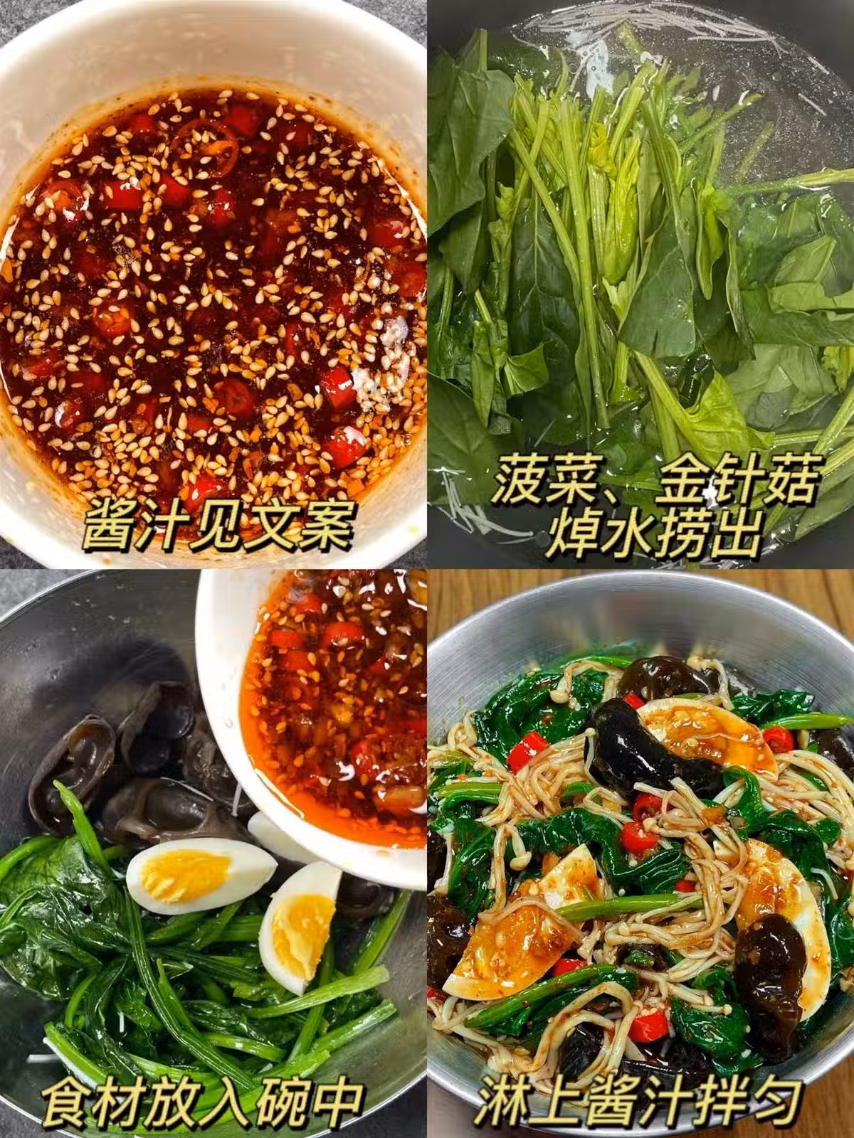 今天分享巨好吃的菠菜木耳拌金針菇!好吃掉秤~