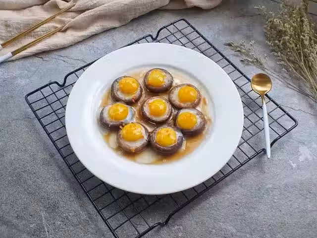 2.將鵪鶉蛋打入香菇中.冷水下鍋蒸8分鐘.