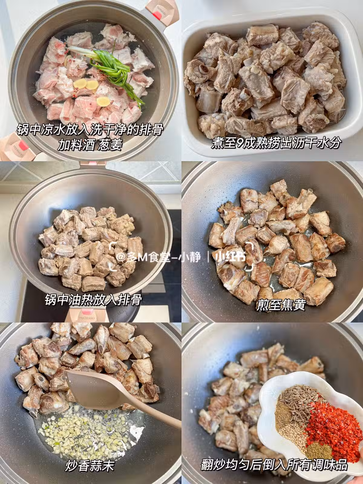 1️⃣排骨洗凈冷水下鍋,放入姜蔥➕料酒煮至九成熟,撈出瀝干水分。