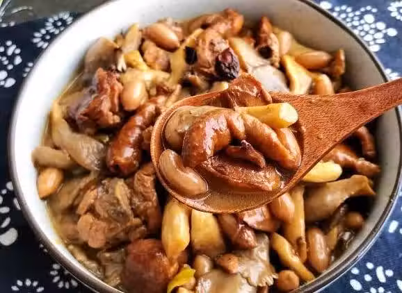大雞腿1隻,平菇1大朵,花生米一大把,