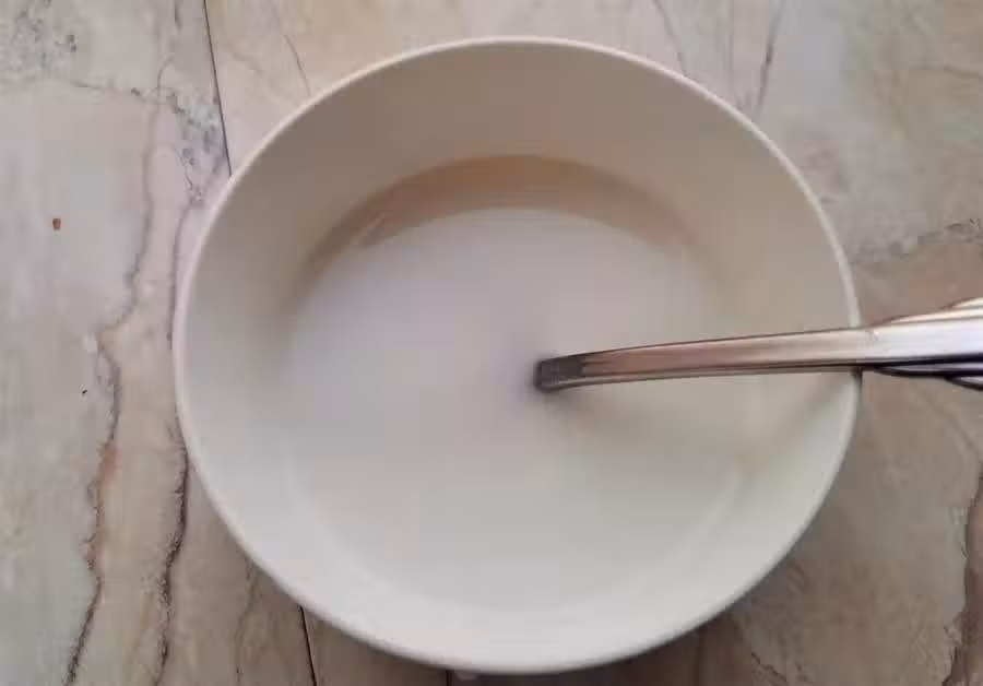 3.把澱粉放入碗內,加入3-4湯匙清水,攪勻,使澱粉呈糊狀。或者用炸制菜肴剩下的麵糊和澱粉糊都可以,這樣不浪費澱粉。