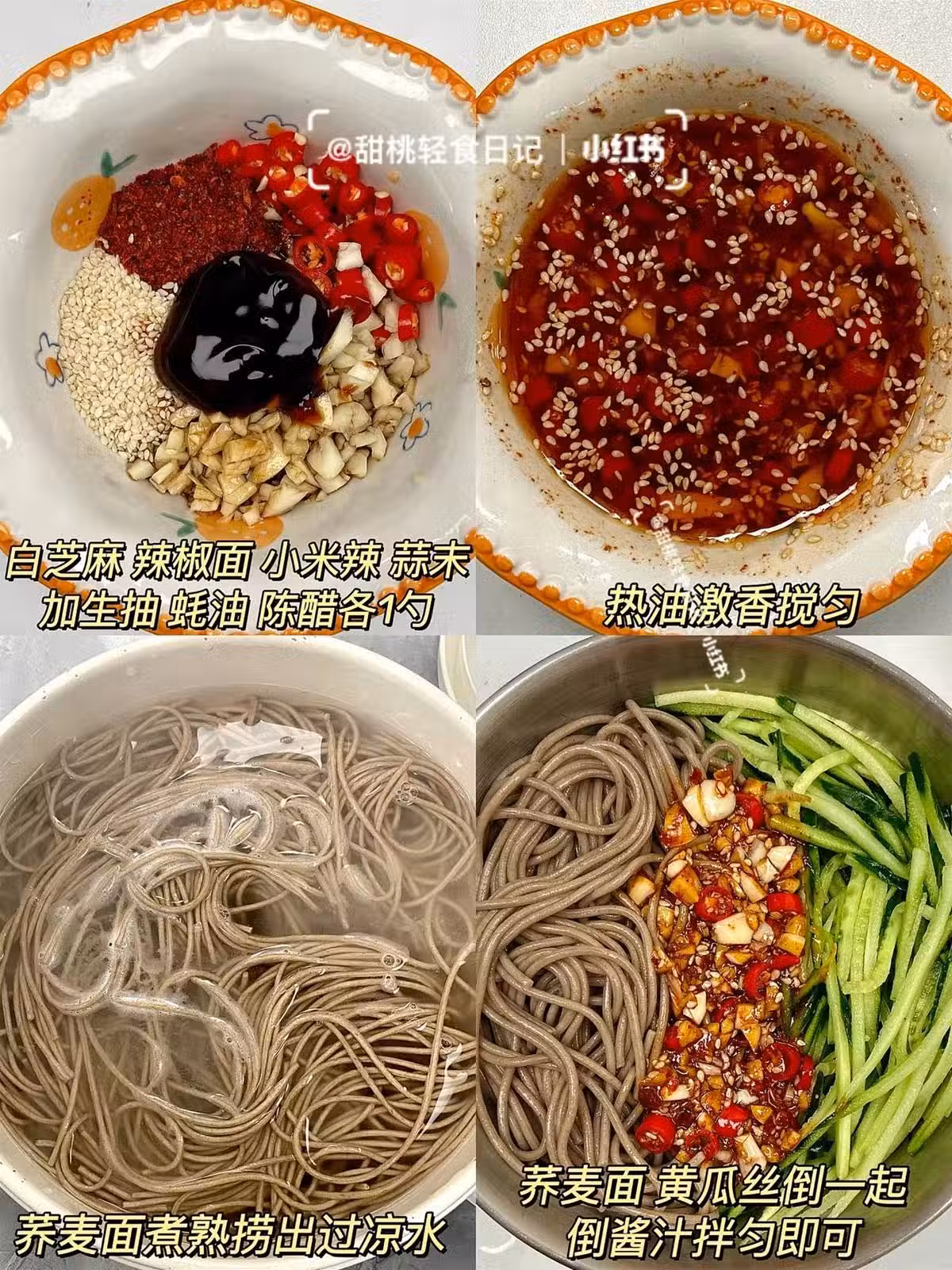 🥒食材:蕎麥面、黃瓜、蒜、小米辣