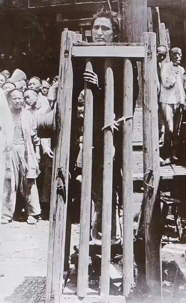 囚犯站在一個名為「立枷」(也被稱為「站籠」)的刑具中。 根據判處的天數,他日夜站立。 籠子的口卡住了他的脖子,他不能在裡面吃喝拉撒,痛苦不堪。 如果是罪行嚴重的囚犯,他腳下的磚塊將逐漸撤出,使他懸空窒息而死。