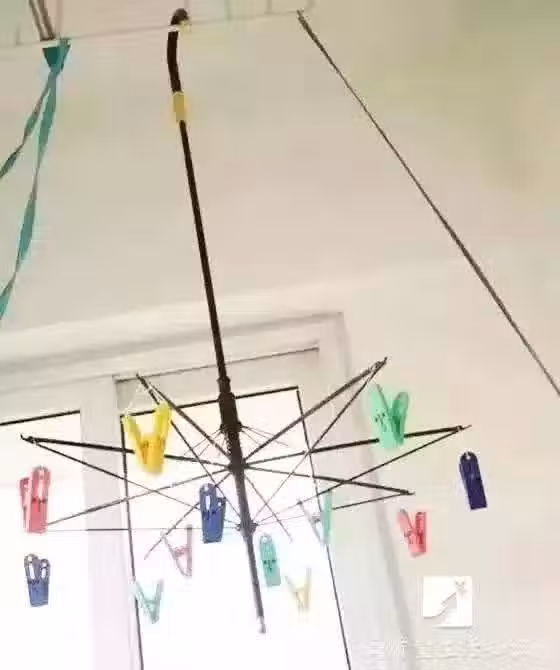 傘骨的接口處接上小夾子後,可以用來曬內褲、曬襪子。........
