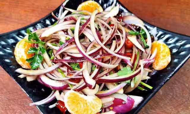 六、涼拌洋蔥花生米,寓意:健康長壽,紫氣東來