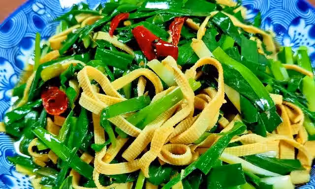 八、韭菜炒豆腐皮,寓意:長久聚財,福氣安康