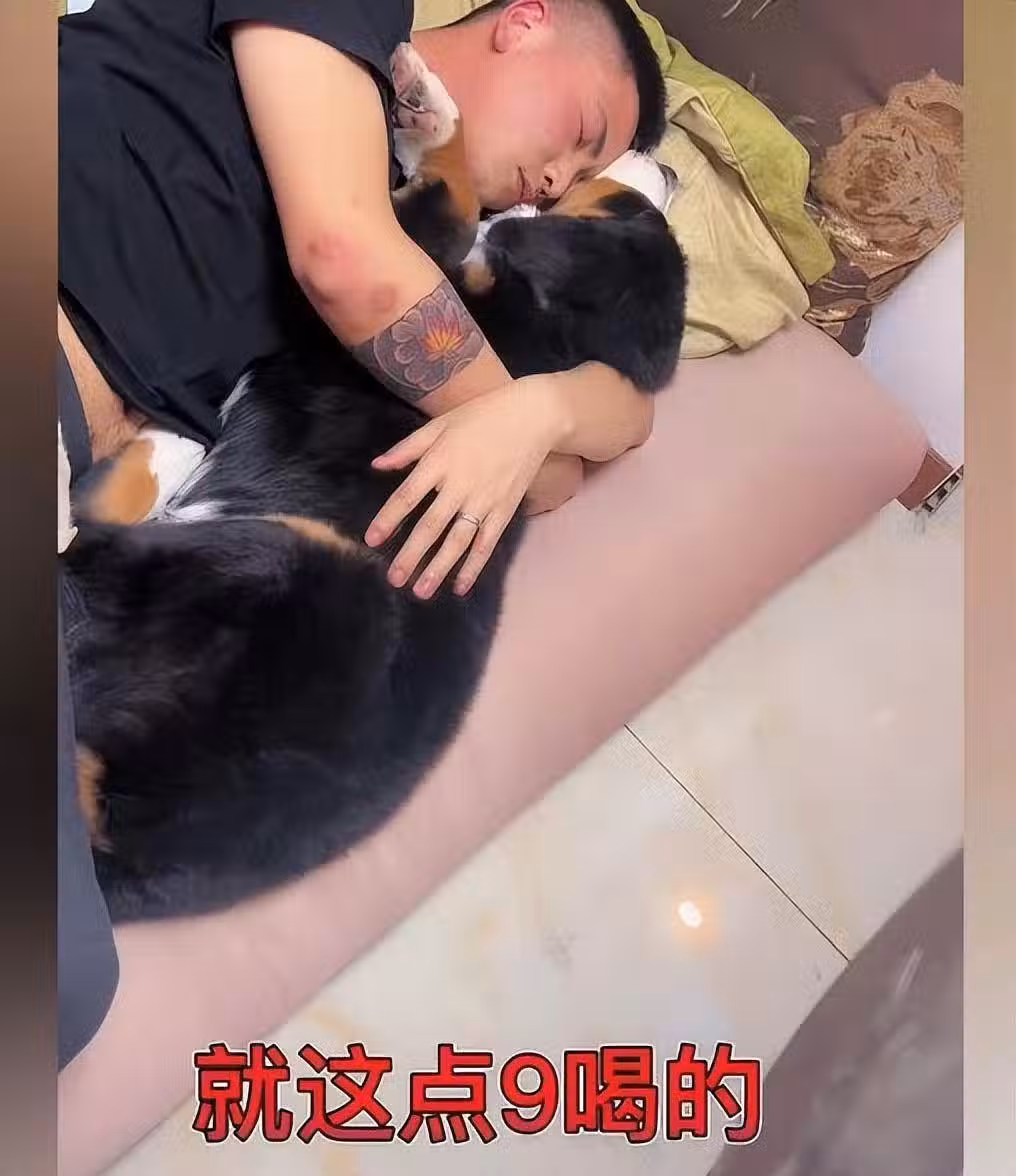 原來丈夫喝得是酩酊大醉,直接就躺在沙發上給睡著了,但這不是重點,重點是他的懷裡竟然緊緊的抱著狗狗不撒手。只見丈夫側躺在沙發上,將狗狗抱在懷裡,他們倆面對面,宛如一對小情侶,畫面十分之辣眼睛,讓女子不忍直視。「你能喝喝,不能喝別喝,都抱狗睡上了!」女子對著丈夫是一頓數落,沒想到丈夫聽了話後,竟然把狗狗給抱得更緊了,你說氣人不氣人?最慘的就是狗狗了,它強行被主人給禁錮在懷裡,就好像某首歌唱的一樣:「我很想逃,卻怎麼也逃不掉。」求狗狗的心理陰影面積,哈哈。