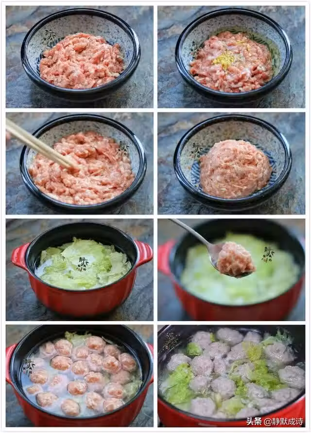 8、把湯煲燒開,及時撇掉浮沫,丸子浮上來之後再煮上五六分鐘,調入少許鹽,攪拌均勻即可關火。喝時可以根據口味加適量香菜末或是香蔥末,特別清淡可口的白菜肉丸湯就做好了。