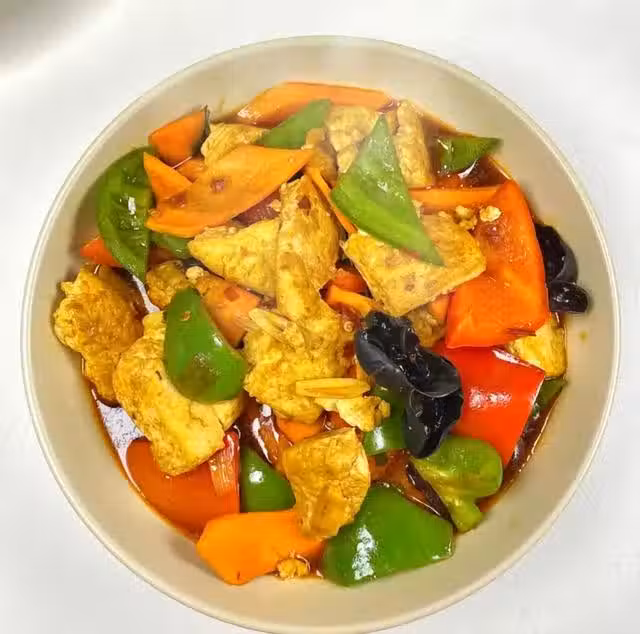 4倒入料汁,倒入配菜翻炒至斷生即可!