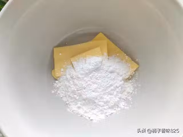 2、先用打蛋器手動攪拌均勻,讓糖粉和黃油粗略混合,這樣就可以防止快速打發黃油的時候,糖粉四處亂飛。啟動打蛋器,打發均勻。