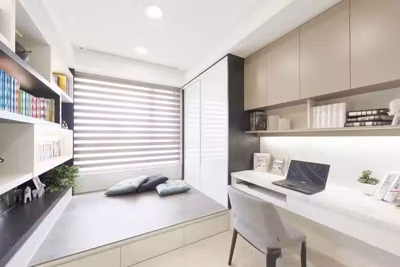 然而,對於一個10㎡乃至更小的房間來說,能不能也同時實現這些多重的功能呢?除了傳說中的現實很難買到的摺疊式或隱藏式家具外,還有一個比較可靠的方案就是「榻榻米+櫃+書桌」組合。
