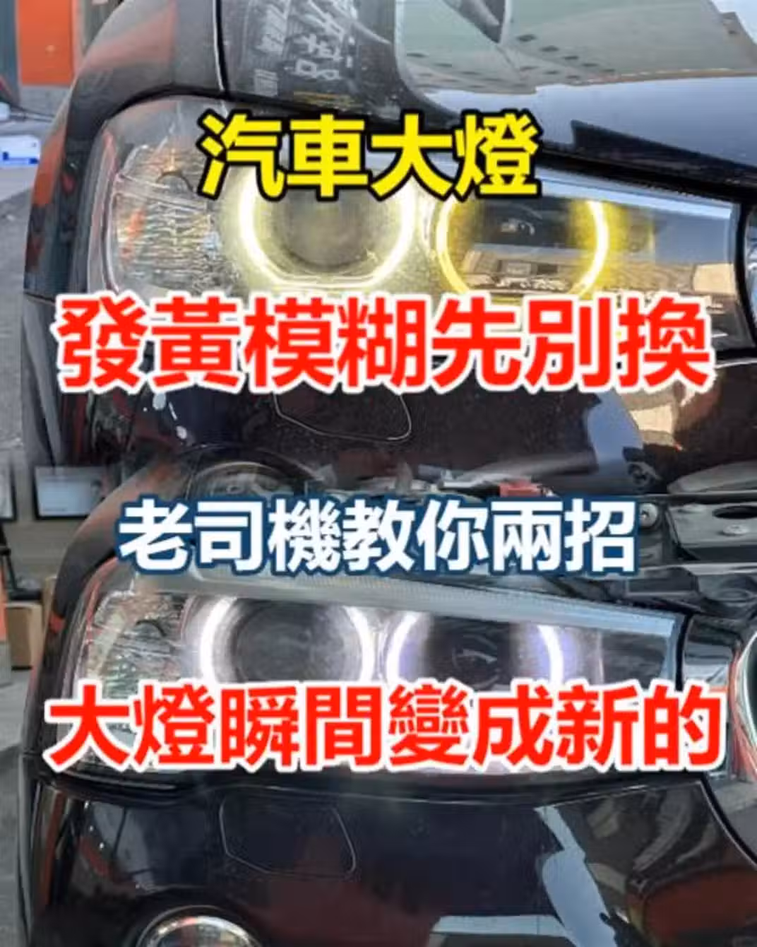 汽車大燈發黃模糊先別換,老司機教你兩招,大燈瞬間變成新的,好聰明~