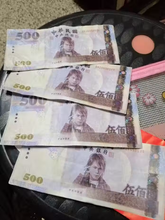 於是他到店家點好餐,老闆也把燒仙草包好,他拿出愛妻給他的紅包,霸氣地抽出其中一張五百元要付錢,但就在那一個瞬間,他瞄到這張五百元怎麼有點奇怪,仔細一看鈔票上面居然印的是歌手「伍佰」的肖像,而鈔票背面是空白的,當下他臉瞬間僵掉立馬向老闆道歉,也趕緊收回「愛妻鈔票」。