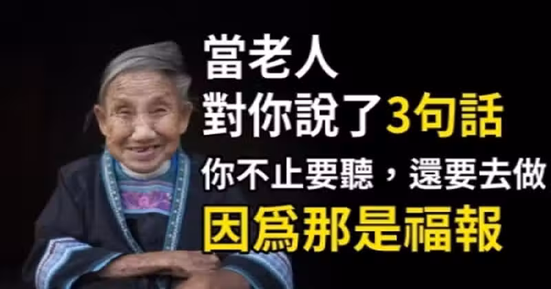 當老人對你說了3句話,你不只要聽,還要去做,因為那是福報 !