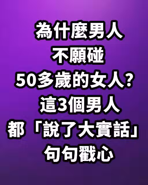 為什麼男人不願碰50多歲的女人?這3個男人都「說了大實話」句句戳心😭