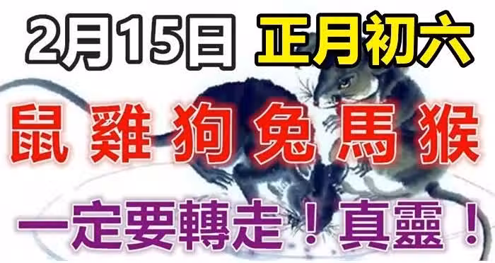 2月15日生肖(鼠、雞、狗、兔、馬、猴)一定要轉走