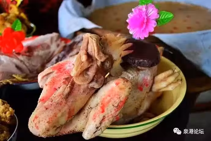 這牲禮是有講究的:不能像平常一樣切脖子,須得取針狀鐵器穿耳取血;後去毛,尾巴部必須留三根較為精良的毛,翅膀與腿部必須彎折向背;後取內臟,清洗完畢一起入鍋蒸煮。